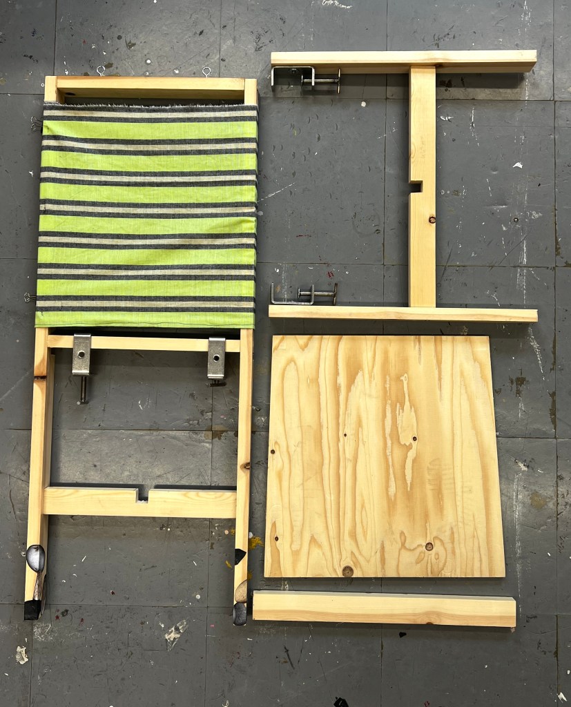 Timber, plywood and steel c-clamps.